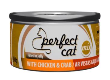 Perfect Cat märgtoit täiskasvanud kassidele kana ja krabi tarretises 80g
