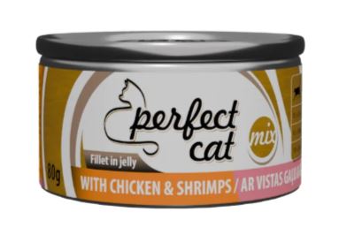 Perfect Cat märgtoit täiskasvanud kassidele kana ja krevetid tarretises 80g